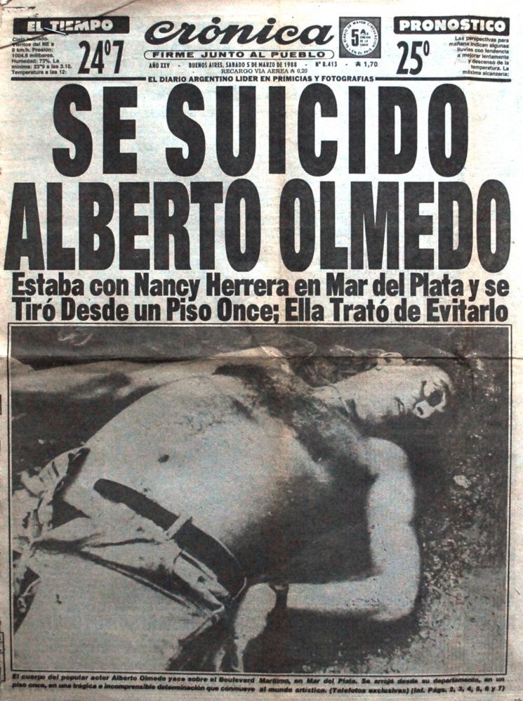 A las 8.30 de la mañana se oyeron los gritos. En lo que pudo ser un ataque de paranoia, Olmedo le pedía a Nancy que no lo suelte, que “se caía”. El Negro cayó desde aquel piso 11 al vacío y murió en el acto, dejando no solo a una familia, sino a todo un país en duelo.