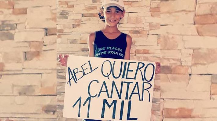 Apoyado por sus seres queridos, Simón había comenzado a viralizar un pedido por medio de las redes. Se lo ve con un cartel que decía “Abel quiero cantar 11 mil”. Se trata de uno de los temas más emblemáticos de los últimos años del cantautor bahiense.