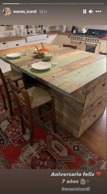 Después de sacarse divertidas selfies durante el vuelo con uno de sus perros, Wanda compartió a través de sus historias de Instagram el almuerzo que le preparó a Mauro para celebrar su séptimo aniversario de bodas.