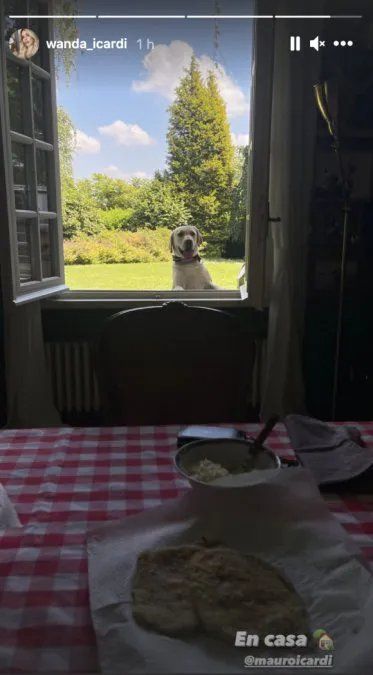 Más tarde, Wanda volvió a compartir otra imagen que muestra a su perro atento a las milanesas que ella misma había preparado para su marido. "En casa", expresó, feliz y enamorada.
