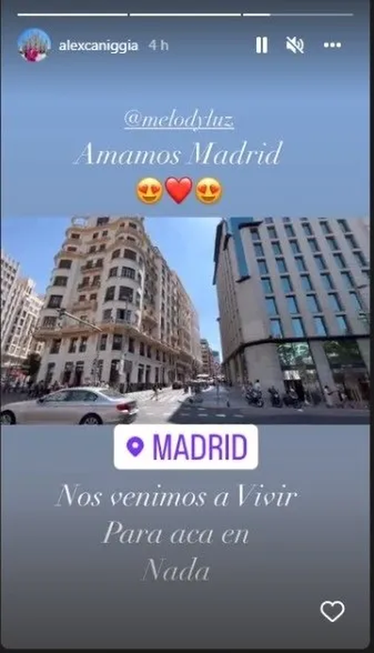Actualmente, se encuentran en Europa de vacaciones, pero, mientras compartían con sus seguidores cómo la están pasando y por dónde están paseando, Alex Caniggia y Melody Luz anunciaron que se irán a vivir a Madrid, España.