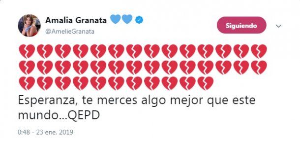 “Esperanza QEPD, con tu llegada y con tu partida nos enseñaste demasiado, los ángeles no pertenecen a este plano. Elevate y encontrá paz, no te merecés este mundo lleno de odio y maldad”, publicó Granata en Instagram