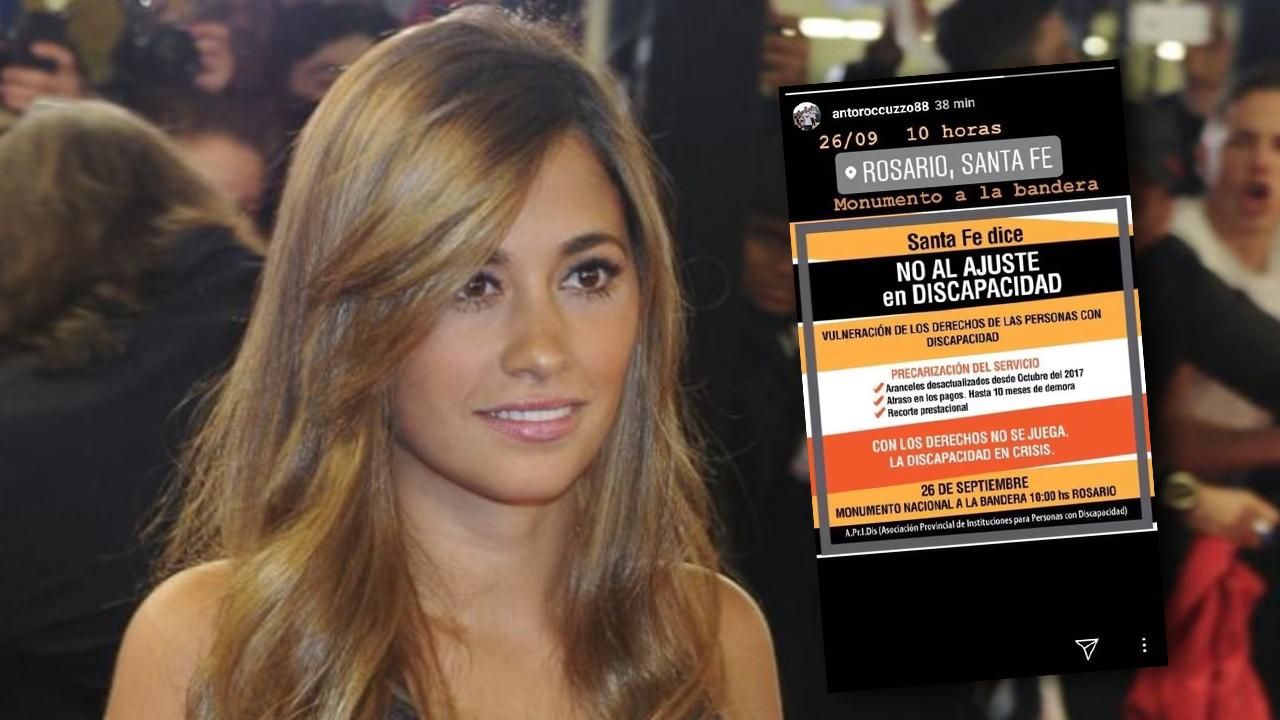 A través de un Instagram Storie la esposa del futbolista Lionel Messi compartió un afiche de una campaña que lucha “contra el ajuste en discapacidad”.