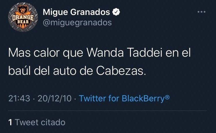 Horas antes, lo mandaron al frente con un tuit donde se burlaba de la muerte de Wanda Taddei, que fue asesinada por el bajista de Callejeros. Allí también involucró a José Luis Cabezas, el fotógrafo de la revista Noticias que mataron tras fotografiar a Alfredo Yabrán.