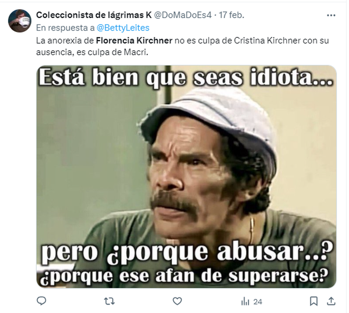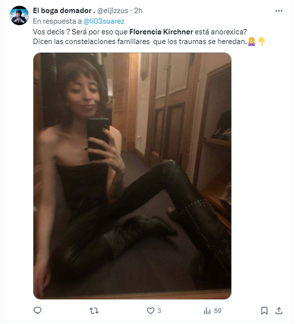 Las imágenes, tomadas en un pasillo donde Florencia juega con el enfoque de la cámara, muestran una figura muy delgada, lo que llevó a comentarios tanto de preocupación por su salud como de crítica hacia su madre, la vicepresidenta de Argentina.