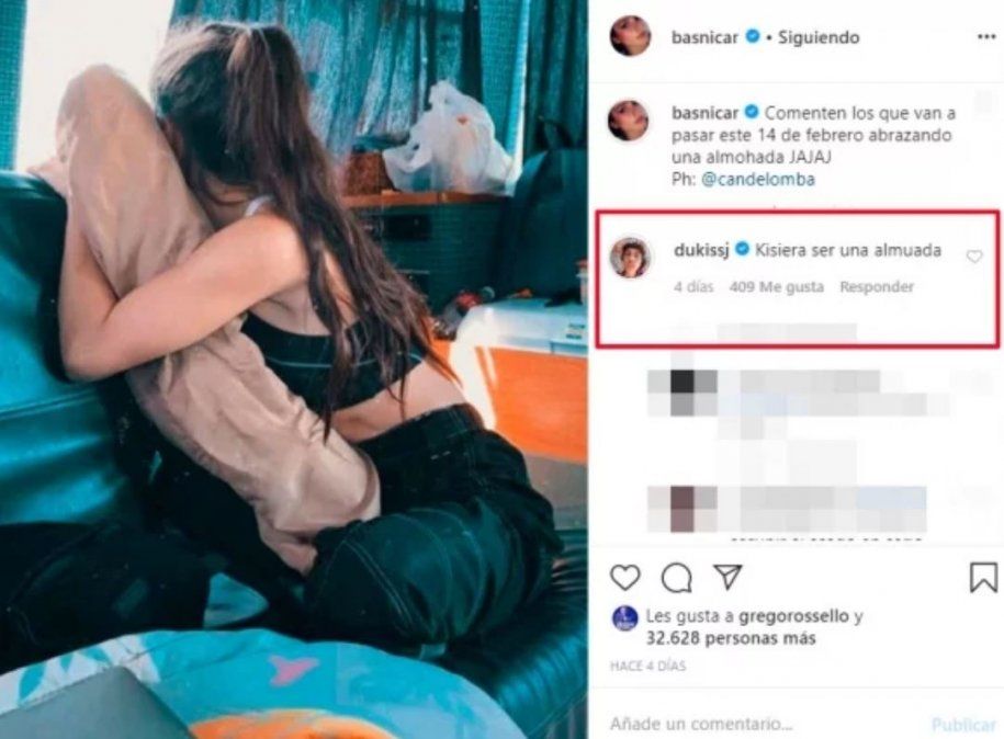 En San Valentín, la actriz se expresó en su cuenta de Instagram con un mensaje donde dejó entrever su separación. "Comenten los que van a pasar este 14 de febrero abrazando una almohada, ja ja ja", escribió. Y su enamorado no se quedó atrás al ver su postal. "Quisiera ser una almuada", le respondió.