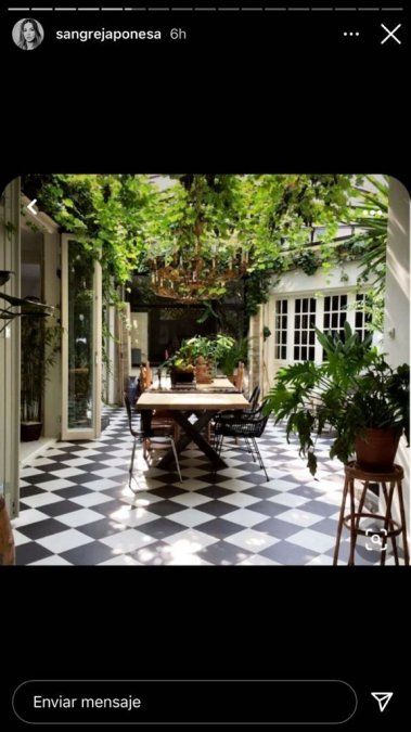 Más tarde, compartió una imagen de lo que quiere conseguir en uno de los ambientes de la casa. También mostró los pisos en blanco y negro, muchísima vegetación por encima y a sus costados, además de una impactante mesa para varios comensales junto a su juego de sillas y enormes ventanales que dan luz al interior.