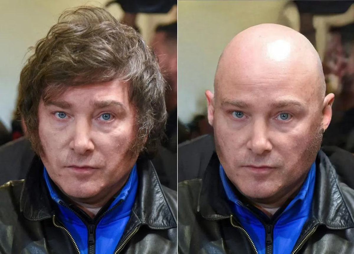 En la imagen, que fue creada con inteligencia artificial, se puede ver cómo sería Javier Milei en caso de que no tenga su característica "peluca".