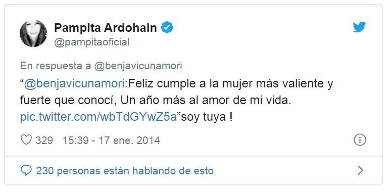 Las pruebas del escándalo datan de enero de 2014, cuando la diosa de las pasarelas -y madre de los hijos mayores de Vicuña- cumplió años. "Feliz cumple a la mujer más valiente y fuerte que conocí, Un año más al amor de mi vida", le dijo. ¿Tendrá un fetiche con esa declaración?
