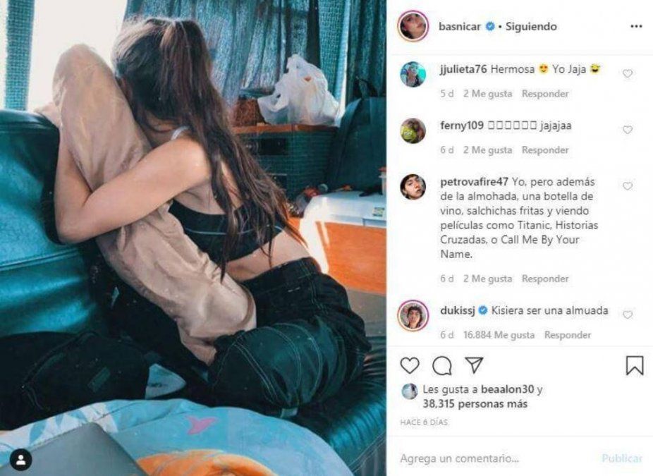 Como si fuera poco, en San Valentín la ex Patito feo dio indicios de su soltería con una imagen donde se la veía abrazando una almohada. "Kisiera ser una almuada", le comentó Duki exponiéndose más que nunca.