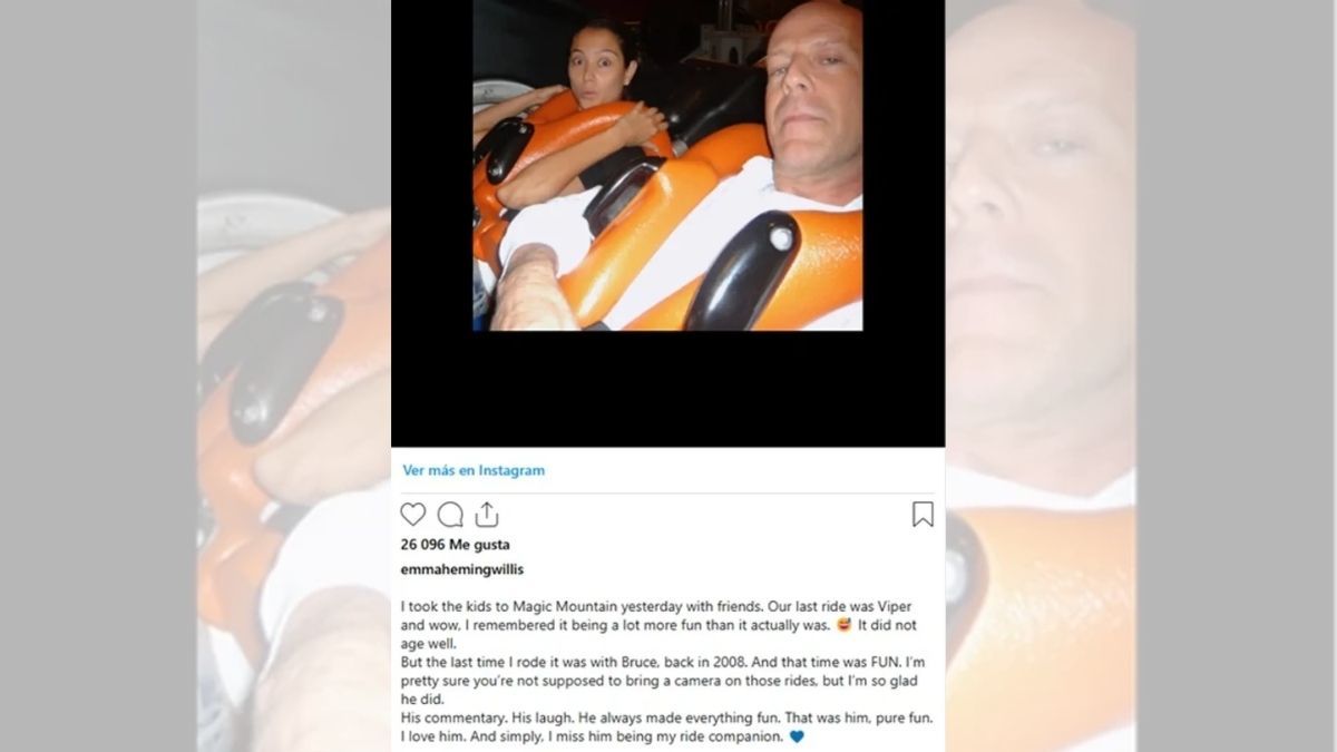 “La última vez que me subí a una montaña rusa fue con Bruce, en 2008, y fue divertido. Siempre hacía que todo fuera divertido. Así era él, pura diversión”, escribió en el posteo que dio origen al malentendido.