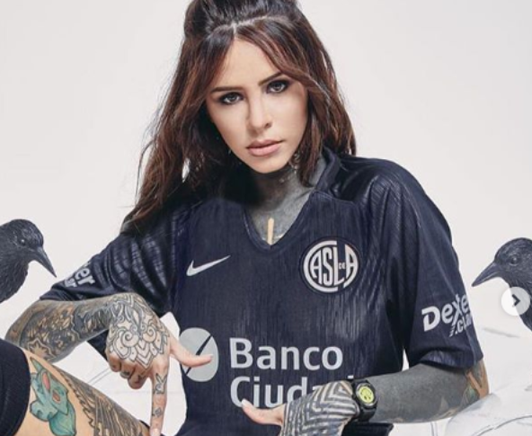 Al mismo tiempo, esta semana se realizó la presentación de la nueva indumentaria de San Lorenzo. Fue la hija del conductor quien posó con la nueva casaca y aprovechó para mostrar su nuevo tatuaje “Cuervo”. Lo hizo en una imagen que dejó a todos helados en las redes sociales.