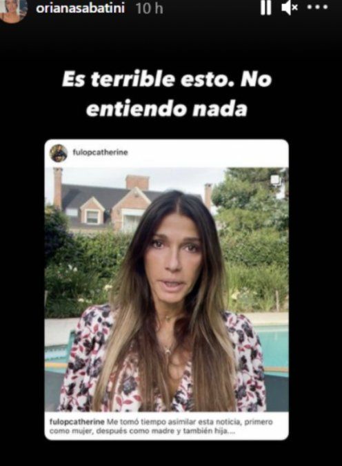 Muy movilizada por lo ocurrido, Oriana Sabatini compartió el video de su mamá a través de sus stories de Instagram y se unió a su pedido. "Es terrible esto, no entiendo nada", sentenció.