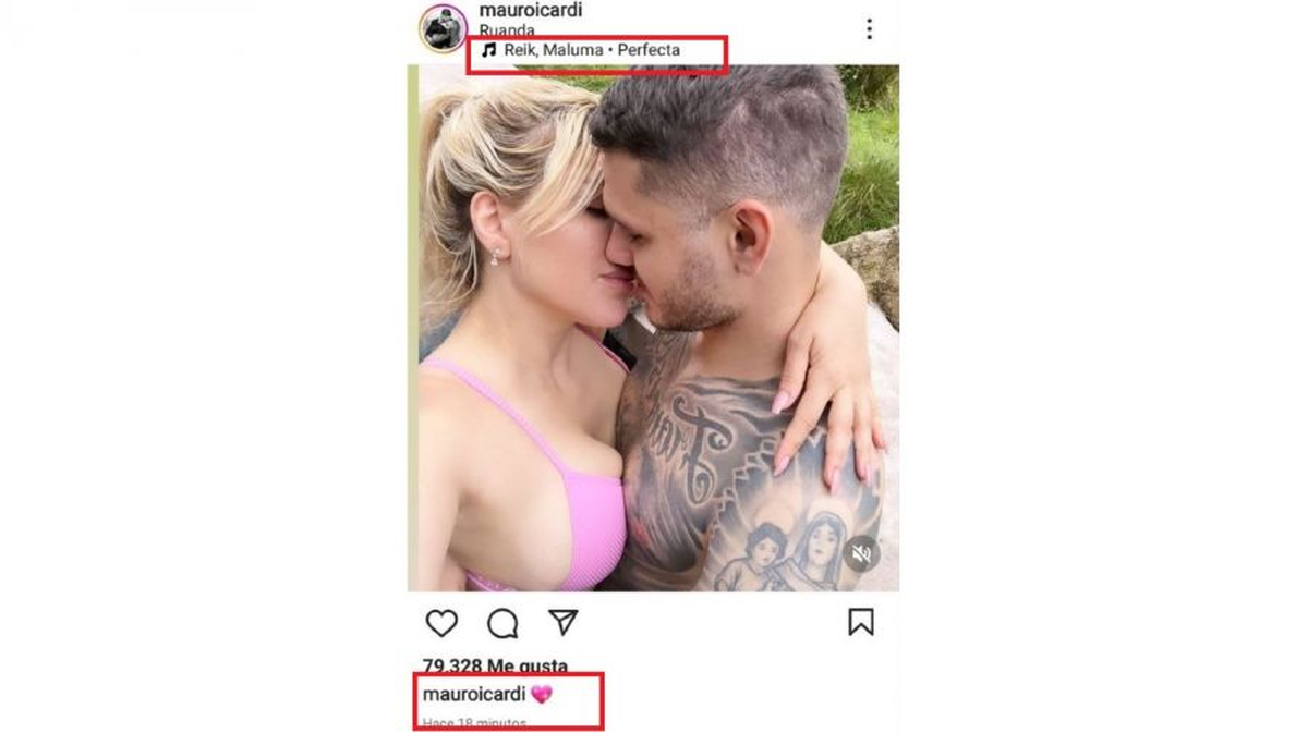 Amante de la polémica, Mauro Icardi publicó en la red una foto con Wanda Nara con agregados que apuntaron a la nueva canción que Rusherking escribió para Eugenia China Suárez, su novia.