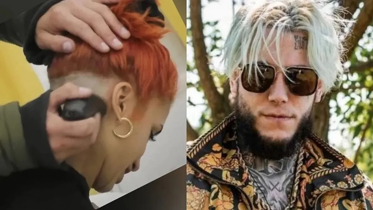 {El notero agarró la maquina y le cortó el pelo al ras a la bailarina. "Ahora me quiero rapar entera", dijo la bailarina contenta por el resultado de su corte de cabello.