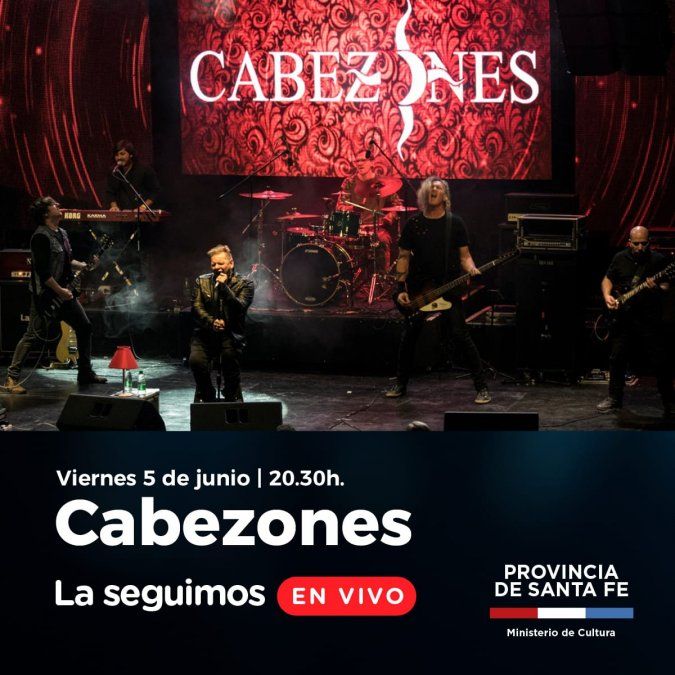 Los músicos santafesinos regresan a los escenarios. El ciclo que comienza con el mes de junio consiste en una serie de Shows pero sin público: la gente va a poder disfrutarlos vía streaming en la plataforma del Ministerio de Cultura de la provincia de Santa Fe y en el canal de la provincia 5RTv. Hoy a partir de las 20:30 en el Centro Cultural provincial actuará Cabezones. Será con "entrada virtual a la gorra."