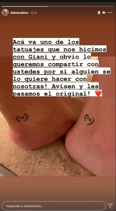 Fue Dalma quien compartió una storie del tattoo que se hicieron en el talón de un garabato muy significativo: el (10) que formaba parte de la firma de Diego.
