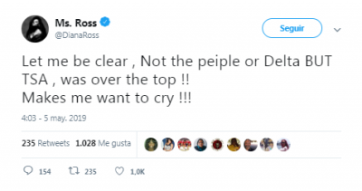 Al enterarse de lo que había ocurrido, la TSA emitió un comunicado al respecto: “La TSA se compromete a garantizar que todos los viajeros sean tratados con respeto y cortesía. Estamos al tanto de la denuncia presentada por Diana Ross. Sobre su experiencia en el Aeropuerto Internacional Louis Armstrong de Nueva Orleans esta mañana“.