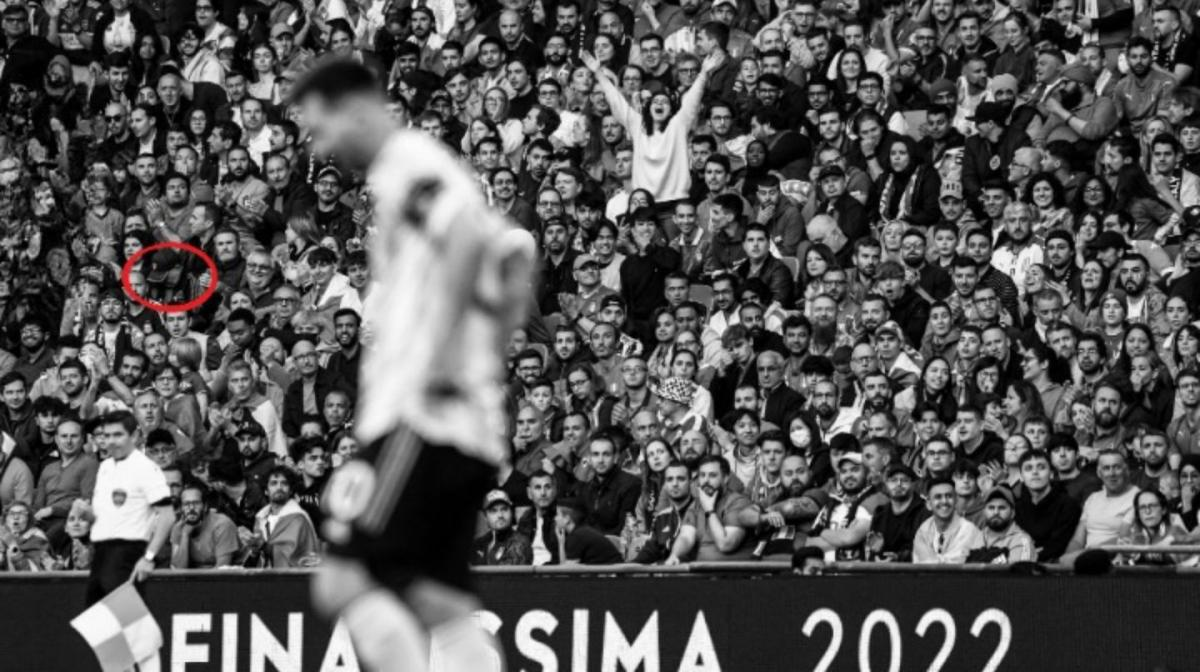 Después de la publicación, los detallistas de Twitter observaron con atención toda la platea de Wembley. Allí, cerca de Lionel Messi, con una gorra a lo Diego Maradona y mirando para abajo, un hincha que asistió al encuentro e hizo explotar las redes con su gran parecido.