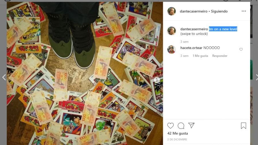 En su canción, Casermeiro asegura que está “fumando mari” y que hay “veneno como la merca”, en clara alusión a la marihuana y cocaína, respectivamente, y exclama “abajo los ratis”, haciendo uso de la típica forma coloquial utilizada para llamar despectivamente a los oficiales de policía. Por otro lado, Instagram se convirtió en el hogar de polémicas frases como “No se desharán de mi tan fácilmente” y 'I'm on a new level' (“Estoy en un nuevo nivel”), en el caso de esta última acompañada por la una foto en donde se observa una gran cantidad de billetes de mil pesos tirados en el piso junto a cartas de Dragon Ball, según informa Exitoina.