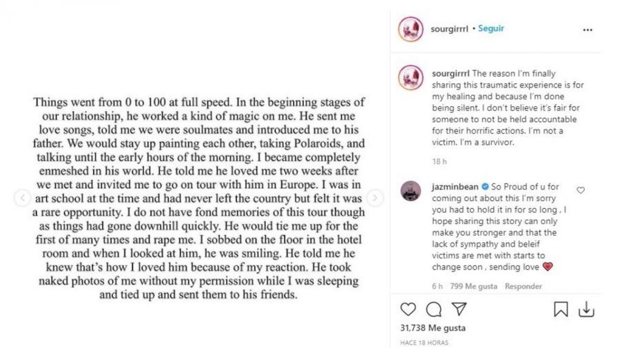 Tori Lynn: "Me ha llevado años comprender realmente el daño que me ha hecho, además de a algunas de las personas que más quiero en el mundo. Marilyn Manson es un abusador. Lo he experimentado de primera mano y me atengo a las declaraciones que he publicado de otras víctimas".