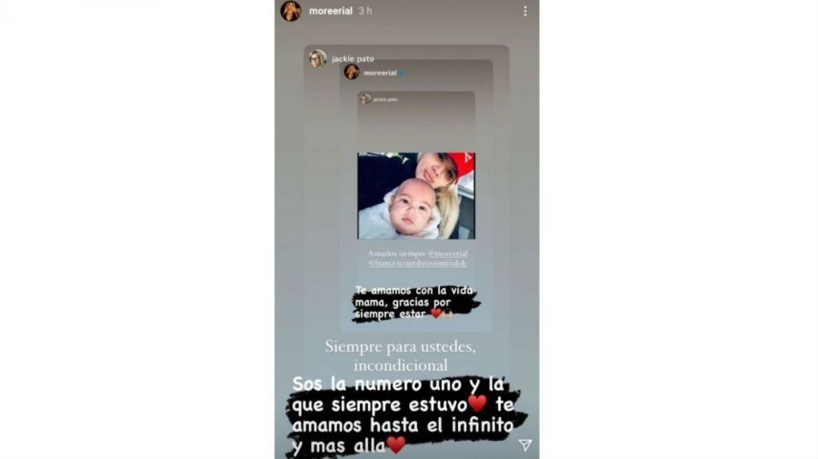Tiempo atrás, More compartió una imagen en su cuenta de Instagram y agregó: “Te amamos con la vida mamá, gracias por estar siempre”. “Siempre para ustedes, incondicional”, agregó la mujer. “Sos la número uno y la que siempre estuvo. Te amamos hasta el infinito y más allá”, replicó la joven.