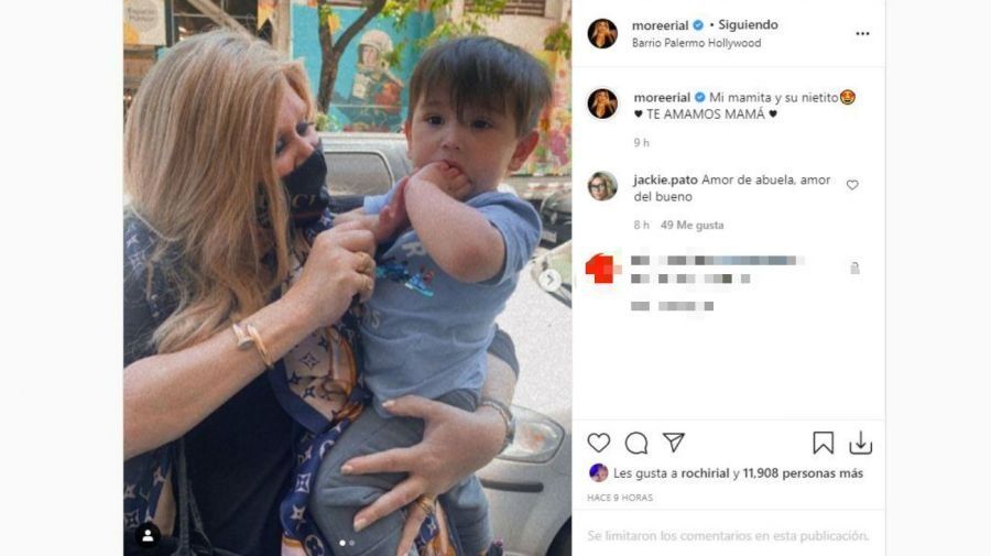 "Mi mamita y su nietito. TE AMAMOS MAMÁ", puso More en otro posteo que muestra a Jackie junto a Franceso. "Amor de abuela, amor del bueno", remarcó la mujer. La publicación, al igual que la mayoria que postea Morena, tuvo el aval de Rocío, quien tampoco se encuentra en el mejor de los momentos con Jorge.