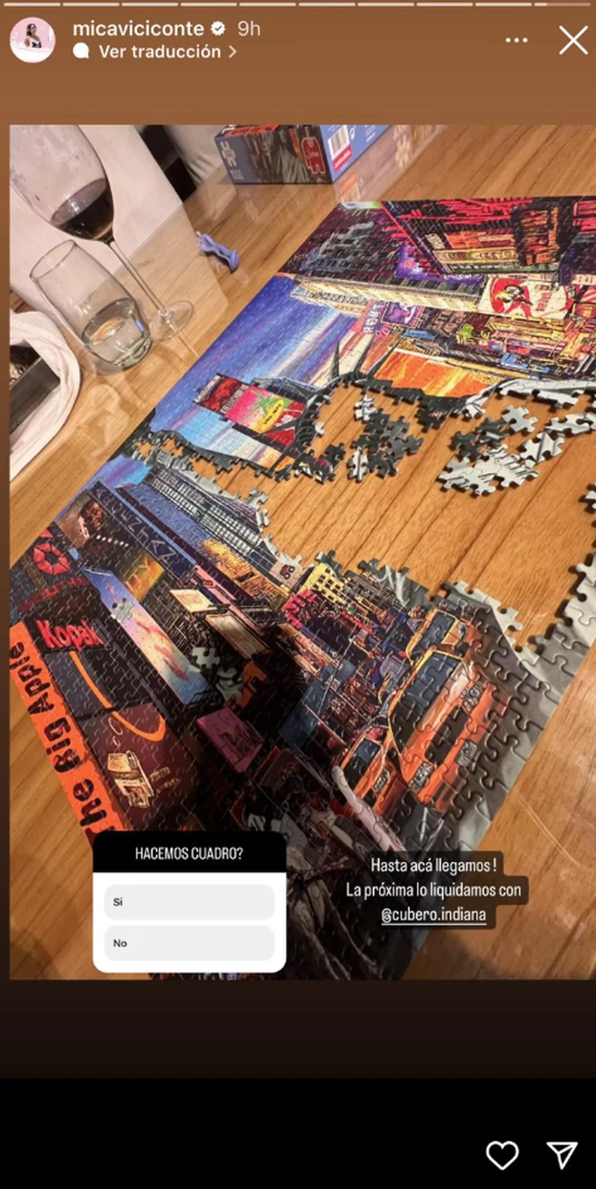 La energía de Mica Viciconte y la curiosidad adolescente de Indiana Cubero se unieron en la búsqueda de entretenimiento. La elección fue un rompecabezas de más de mil piezas, representando la icónica Times Square en Nueva York, con la majestuosa estatua de la Libertad en primer plano. Sin embargo, como muestra de manera transparente Mica en sus historias de Instagram, el proceso no resultó como habían imaginado.