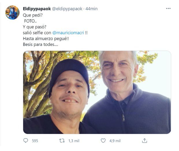 El Dipy comentó que estuvo una hora y media en la casa de Macri: "Me cayó bien porque no me habló de política. Y quizás uno tiene el prejuicio por ser de otra clase, pero me habló bien. Quería saber de mi vida, él me contó de la suya..."