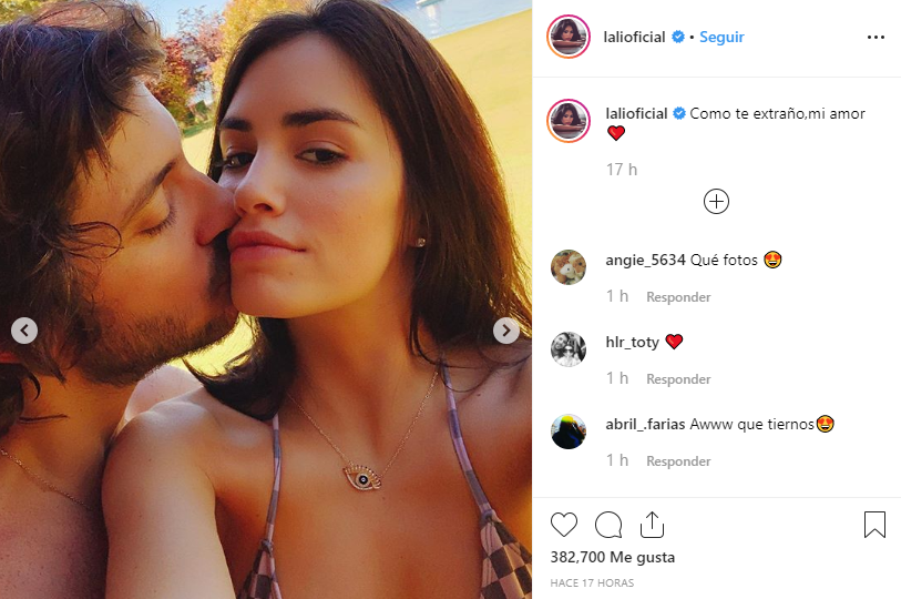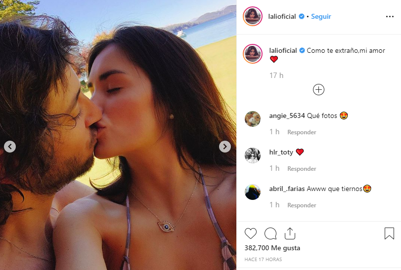 El posteo, que fue acompañado por cuatro imágenes súper románticas de Lali junto a Santiago en las que se los ve besándose y abrazándose, enternecieron las redes y superaron los 382 mil “Me gusta” en menos de 17 horas.