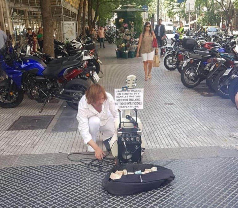 "Usaron mi imagen en Bendita TV y en canales masivos. Me hicieron bullying y no tengo contrataciones", se lee en el cartel que lleva junto a él. Actualmente se encuentra haciendo shows a la gorra para llamar la atención de los turistas, quienes le dejan algún que otro billete.