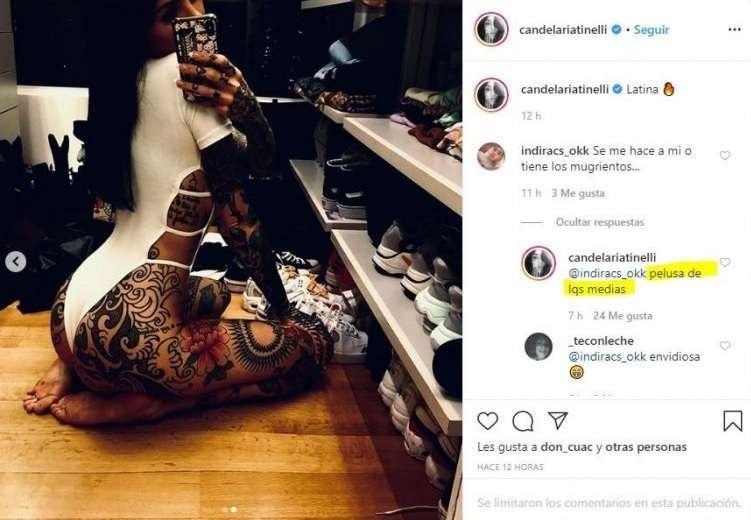 Sin embargo, Cande explicó lo sucedido a fin de mermar las críticas. Ella misma le respondió a una usuaria para aclarar: “Pelusa de las medias”.