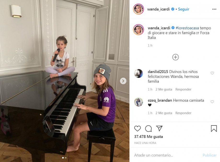 En la descripción de su posteo, Wanda Nara escribió: “Tempo di giocare e stare in famiglia. Forza Italia”. En español, esto significa: “Tiempo para jugar y estar en familia. Fuerza Italia”. También se sumó al hashtag #IoRestoACasa (“Yo me quedo en casa”), que se está viralizando entre influencers y personalidades italianas en varias redes sociales para que tomen precauciones en el país.
