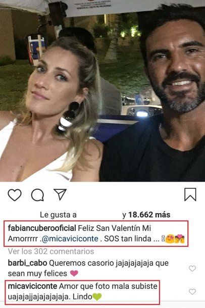 Los famosos no son ajenos a hacer tiernas dedicatorias por San Valentín, aunque a veces las respuestas no son las esperadas. Poroto Cubero publicó en Instagram una foto con Mica Viciconte, acompañada del siguiente mensaje: “Feliz San Valentín Mi Amorrrrr. @micaviciconte. SOS tan linda”.
