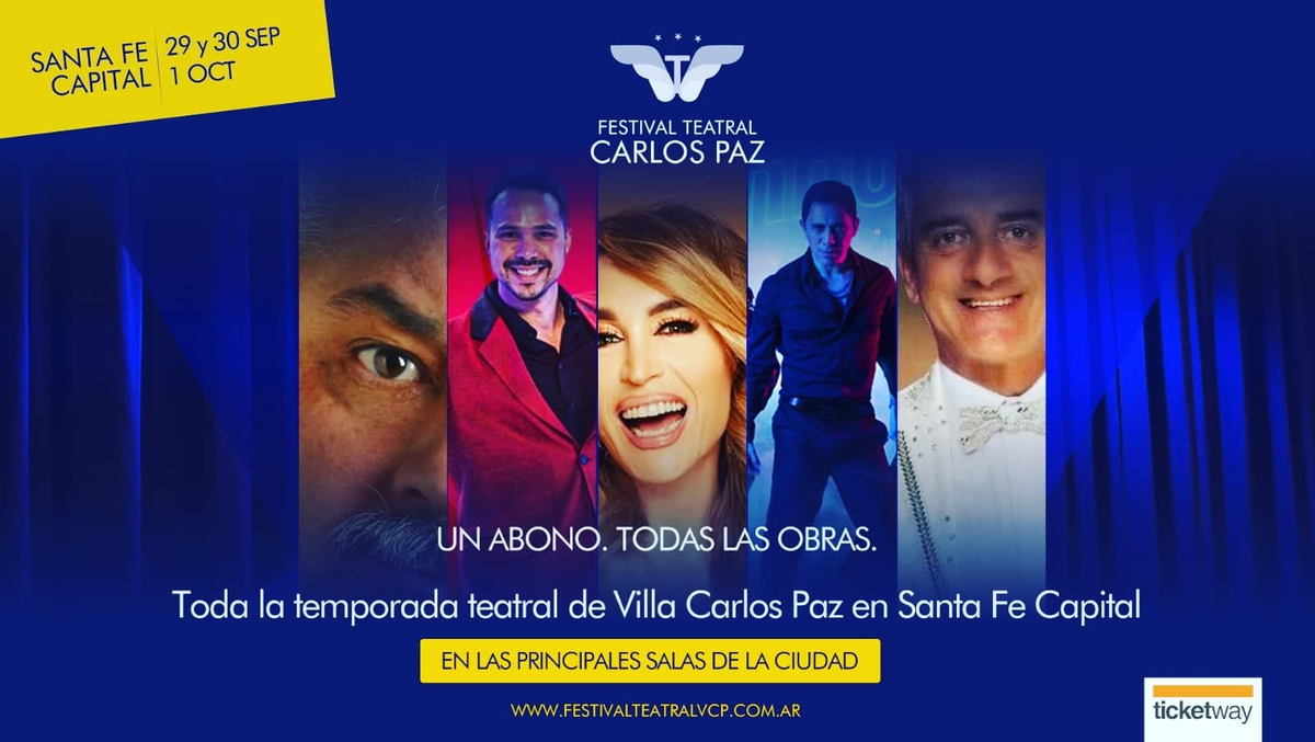 Por primera vez, Villa Carlos Paz saldrá de gira nacional y su parada inicial será la capital provincial. Del 29 de septiembre al 1 de octubre, llega a la ciudad de Santa Fe el Festival Teatral de Villa Carlos Paz, una propuesta inédita en el país que consiste en la presentación de 10 obras de teatro de primer nivel en simultáneo.