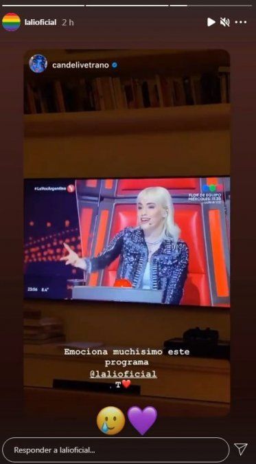 Sí, y es que Cande Vetrano ha grabado un momento en el que Lali Espósito se encontraba en cámara y ha aprovechado para destacar: “Emociona muchísimo este programa Lali”, comentó la ex participante de Masterchef, quien además acompañó su mensaje con un emoji de corazón.