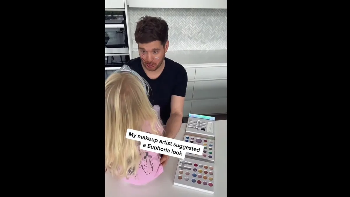 En el video se ve a la pequeña arriba de la mesada mientras maquilla a su papá, inspirándose en una serie que es furor entre los adolescentes. "Makeup is art, Beauty is spirit (El maquillaje es arte, la belleza es espíritu)", expresó Michael Bublé a pura ternura con el momento de conexión familiar.