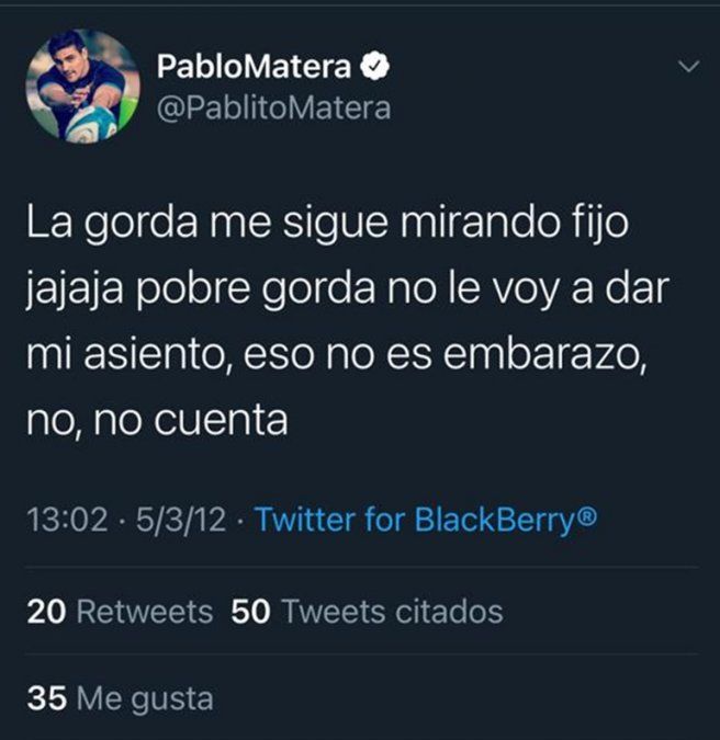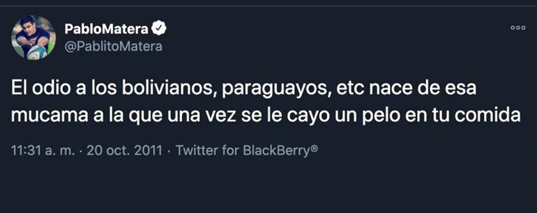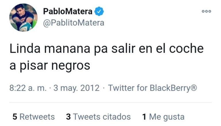 A raíz de esta situación, los usuarios de Twitter sacaron a la luz varios tuits antiguos de Matera con comentarios racistas y discriminatorios.