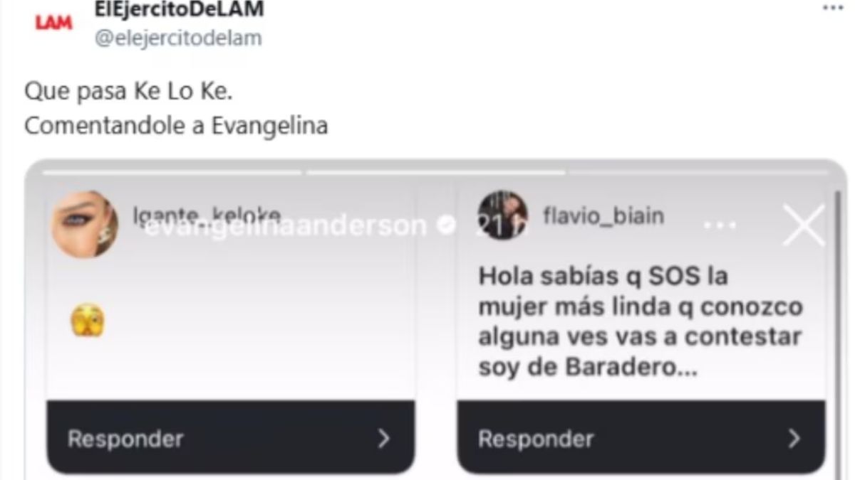 Evangelina Anderson compartió una captura de mensajes que recibió en Instagram y entre ellos apareció una reacción de L-Gante.