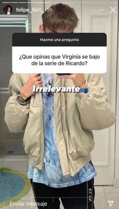 En esa sintonía, Felipe Fort fue consultado sobre su opinión de la baja de Gallardo en la historia de su papá, y el joven fue contundente en su respuesta: "Irrelevante", lanzó con un emoji de brazos levantados.