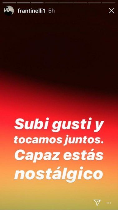 Lejos de pedir disculpas, Fran escribió un picante mensaje en sus historias de Instagram después de recibir la carta: "Subí, Gusti, y tocamos juntos. Capaz estás nostálgico".