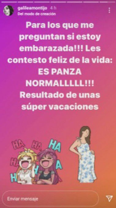 “Para los que me preguntan si estoy embarazada. Les contesto feliz de la vida: es panza normal. Resultado de unas súper vacaciones”, escribió la famosa que durante los últimos días también cumplió uno de sus más grandes sueños: inaugurar su boutique.