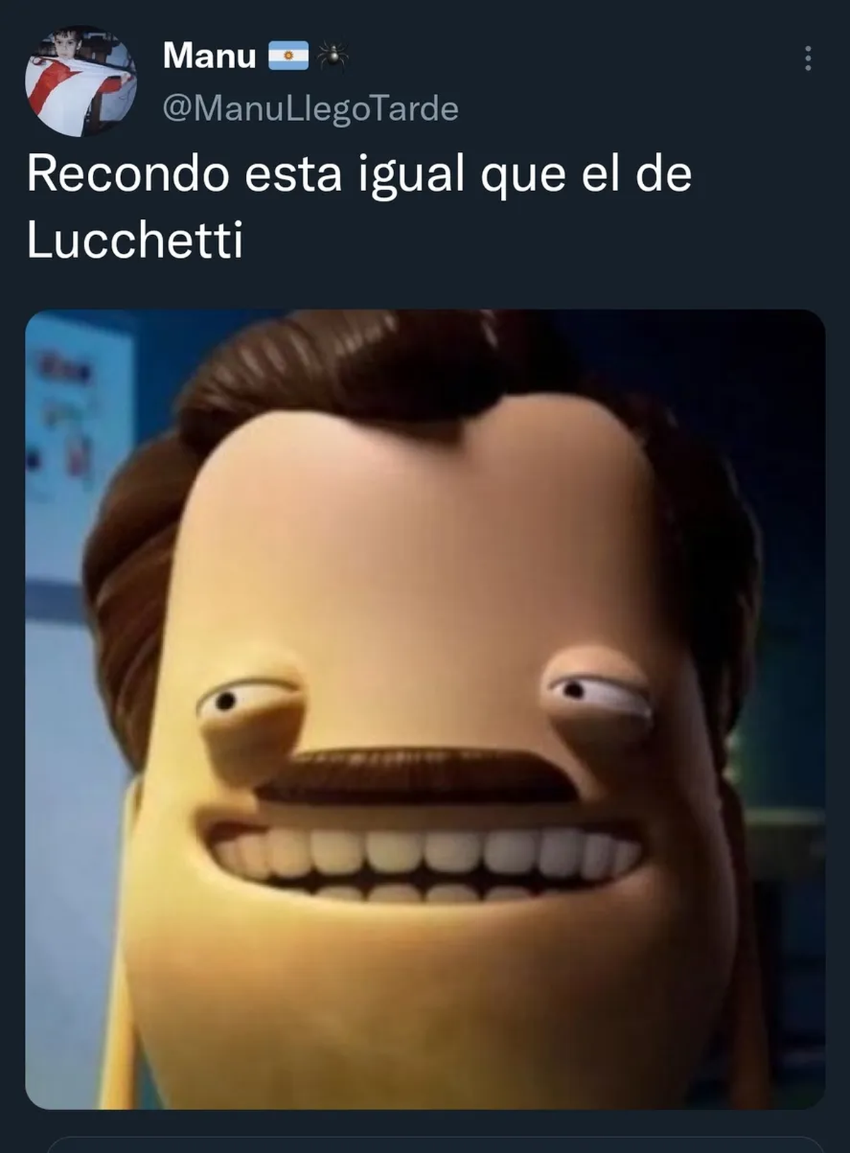 "- che, viste a Recondo? Parece un comisario facho expulsado por turbio.