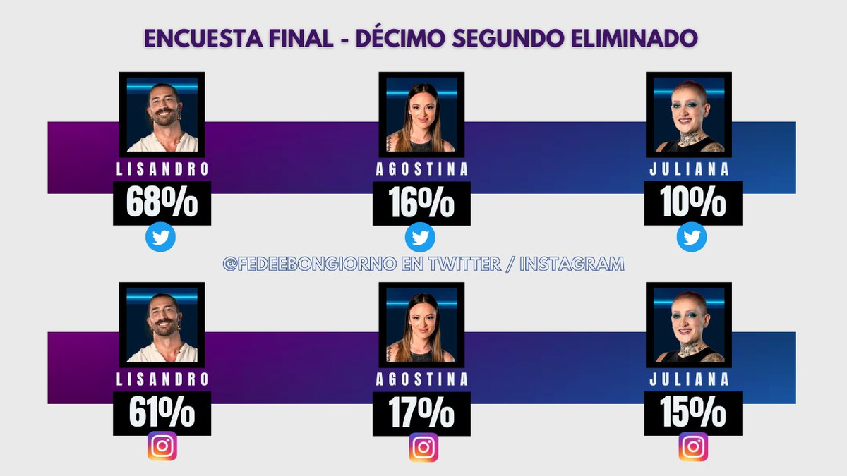 Sin embargo, Lisandro se lleva las mayores chances por amplia mayoría en ambas redes sociales. En X (Twitter), Lisandro cosechó el 68% de los votos, mientras que en Instagram el porcentaje fue el de 61%.