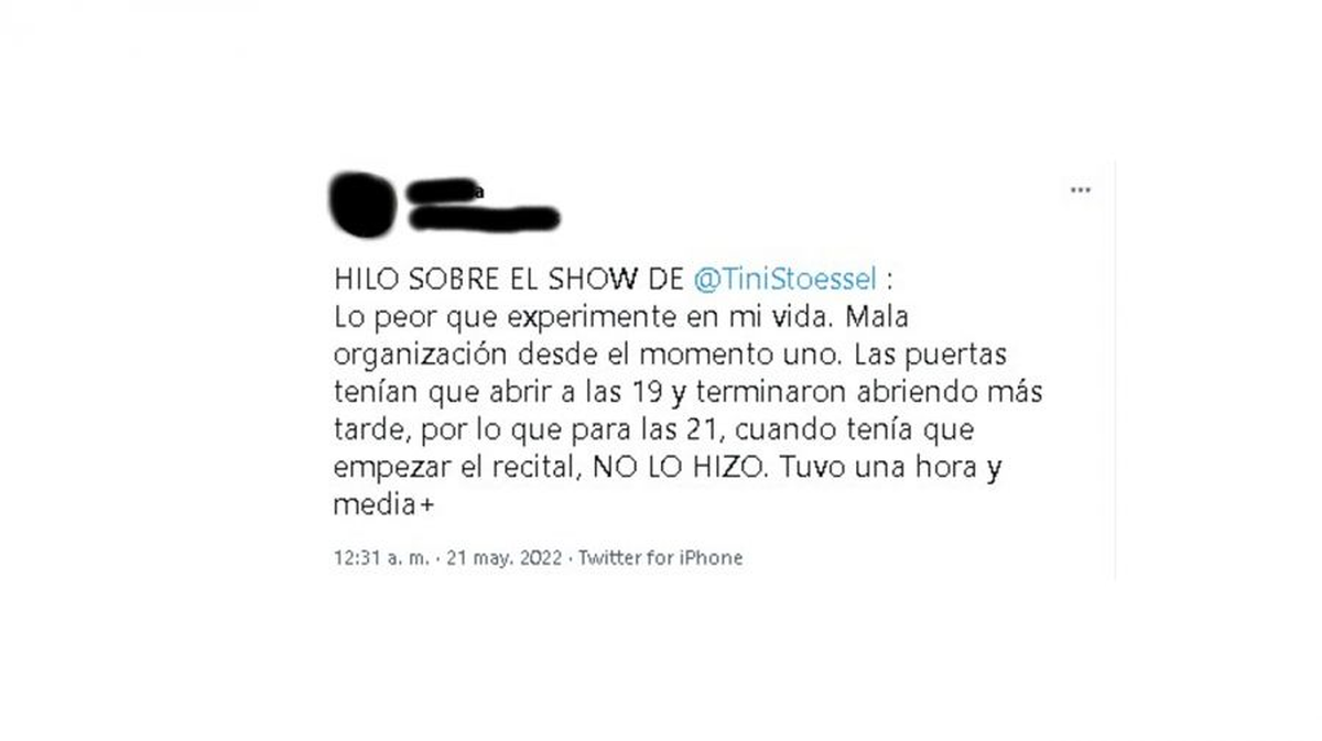 “Lo peor que experimenté en mi vida. Mala organización desde el momento uno. Las puertas tenían que abrir a las 19 y terminaron abriendo más tarde, por lo que para las 21, cuando tenía que empezar el recital, NO LO HIZO”, comenzó diciendo una seguidora de la artista.