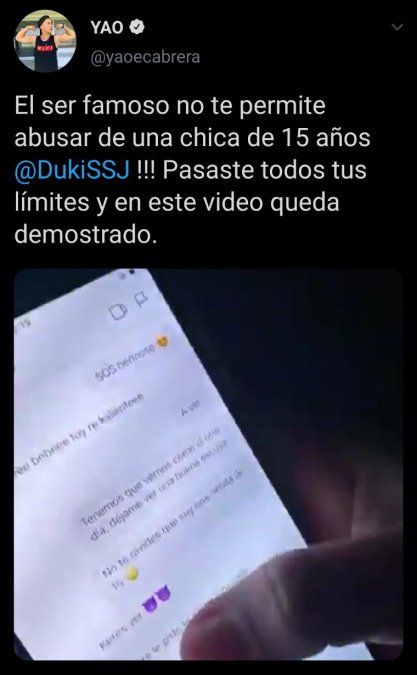 El miércoles por la noche, Duki se convirtió en TT de Twitter por un escándalo que, de comprobarse, podría llegar a la Justicia penal. En las redes comenzó a circular un video íntimo en el que se ve a un joven de aspecto similar al cantante, tocándose sus partes frente a un espejo. Hasta aquí, se podría decir que la difusión del material fue una violación a su intimidad y nada más pero, el verdadero problema surgió cuando el youtuber Yao Cabrera aseguró: