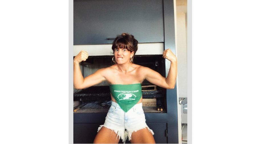 Inicialmente, la actriz aprovechó el calor para cambiar su look y decidió utilizar como top la famosa prenda que reza Educación sexual para decidir, anticonceptivos para no abortar, aborto legal para no morir.