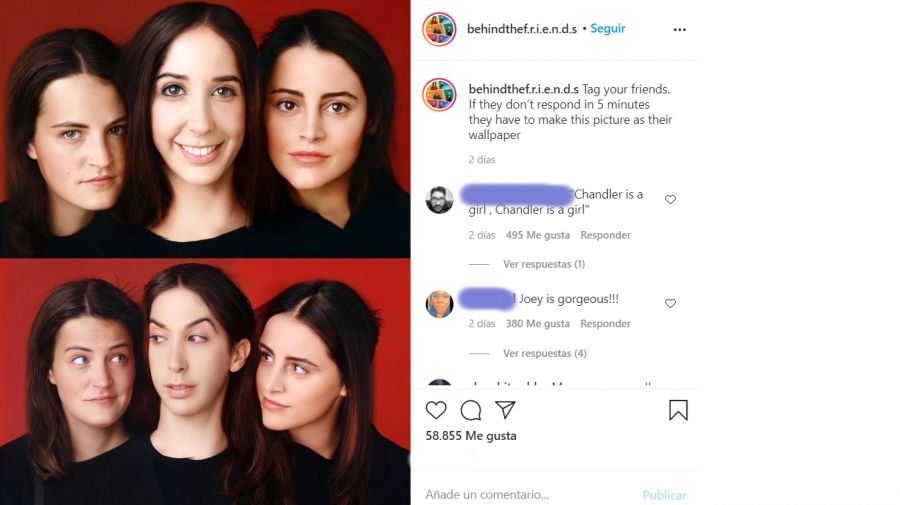 Con Adobe Photoshop como herramienta principal, la cuenta @BehindtheFriends llevó adelante su cometido y convirtió a los tres amigos neoyorkinos (Chandler Bing, Ross Geller y Joey Tribbiani) en tres jóvenes del sexo opuesto.