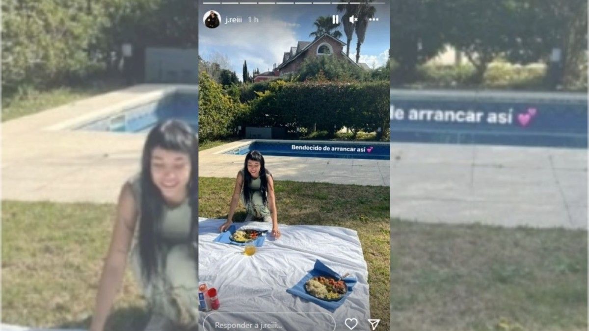 "Bendecido de arrancar así", expresó agradecido J. Rei, en su perfil de Instagram, junto a una foto en la que se puede ver a María Becerra con una enorme sonrisa, en el patio de la casa que comparten, mientras acomoda una manta sobre el césped con el almuerzo de ambos.