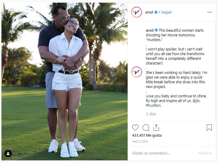Aprovechando que está en un parate de las grabaciones de su nueva película “Hustlers” en donde se la verá llevando una vida de stripper. La publicación, que apareció en el Instagram de Rodríguez tiene a hoy más de 433.000 aprobaciones.